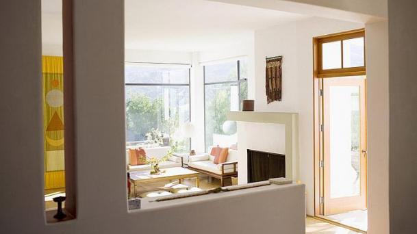 This apartment with nice shades of blue and a beautiful bathroom will help you to relax after work.